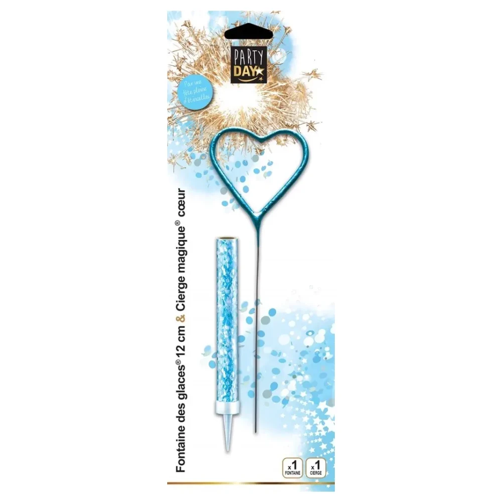 DUO CIERGE MAGIQUE COEUR & FONTAINE SCINTILLANTE – BLEU